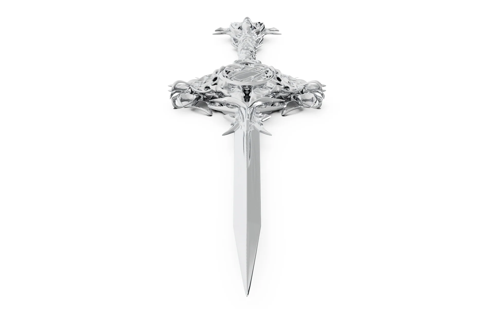 Tribal geometries liquefied into a chrome-forged philosophical weapon. A manifestation of consciousness beyond physical constraints